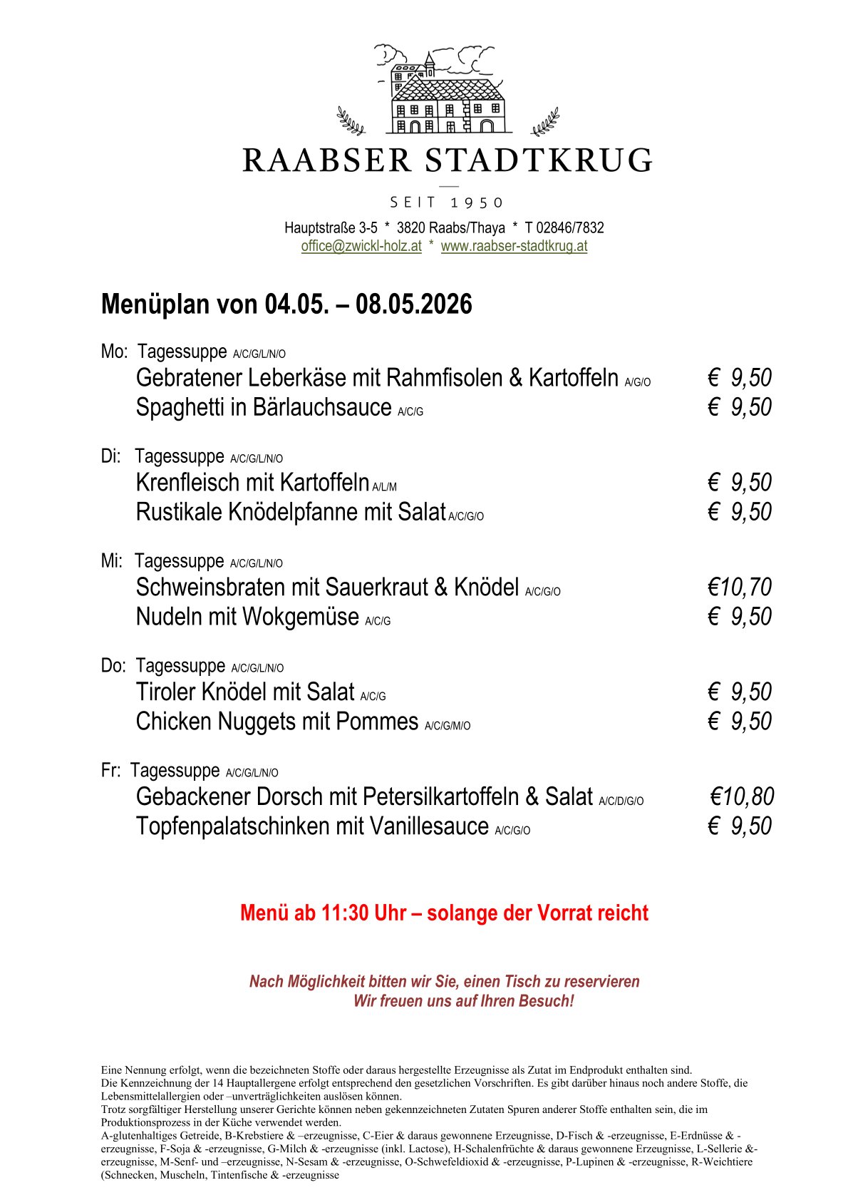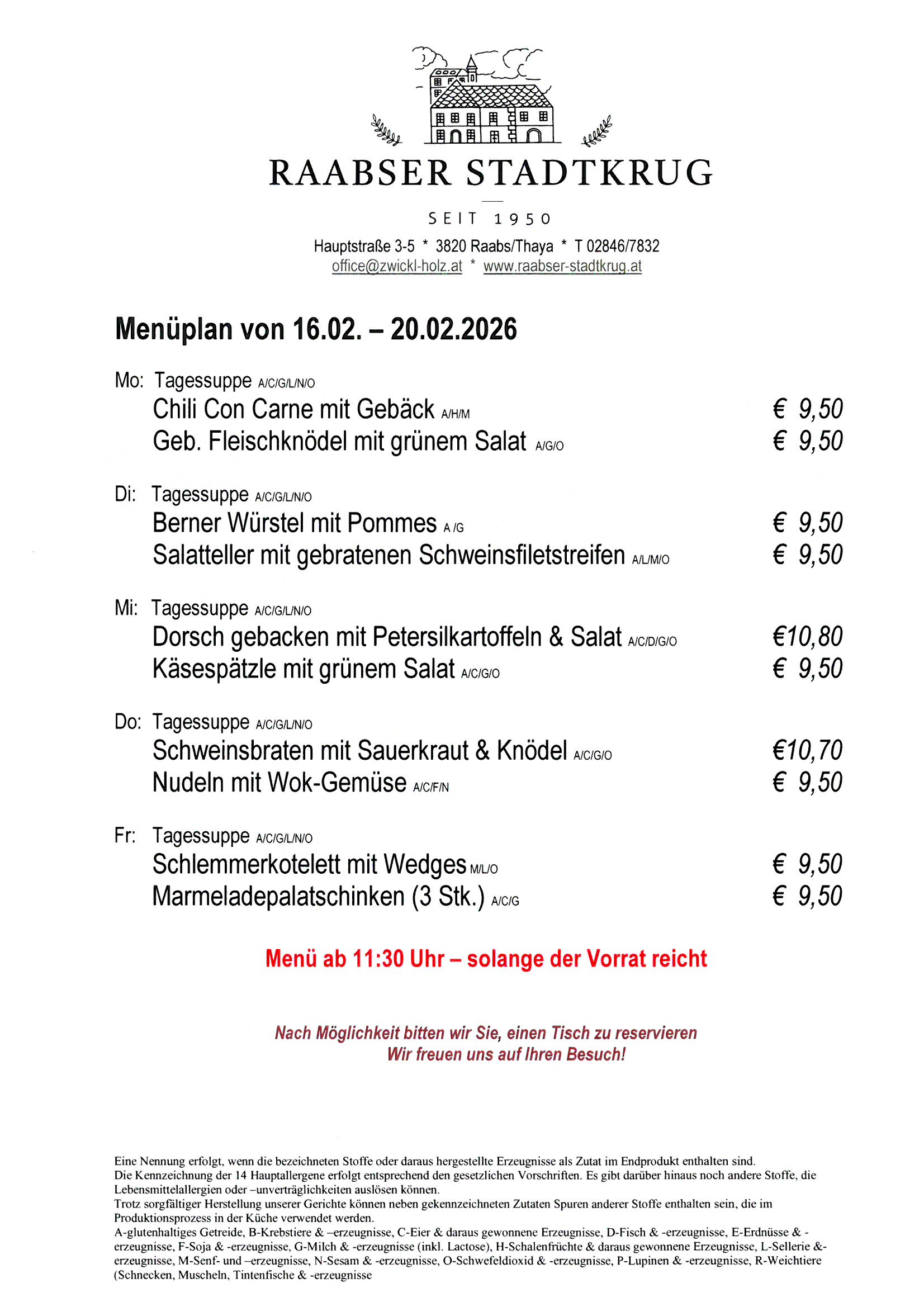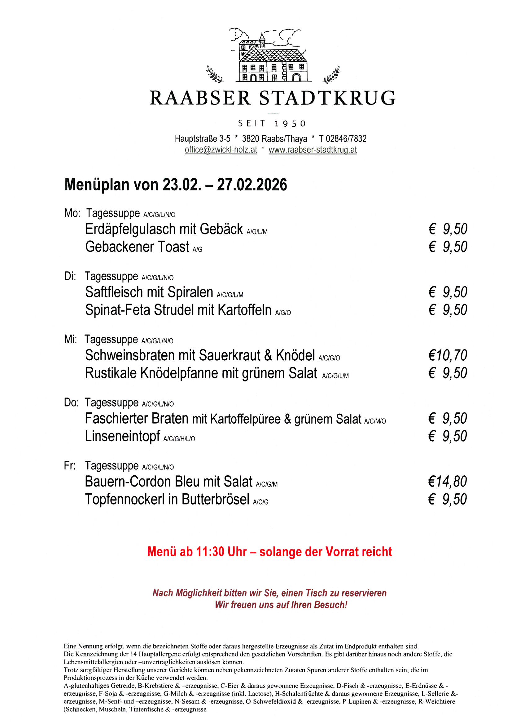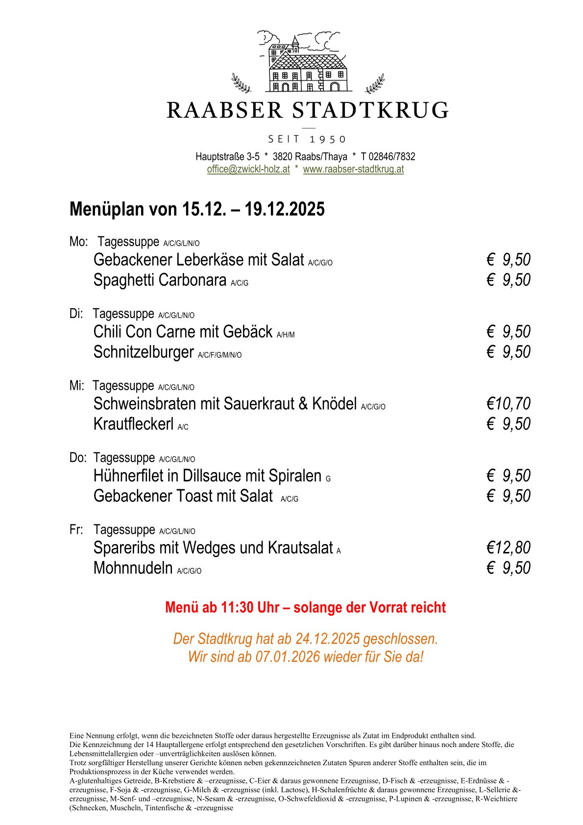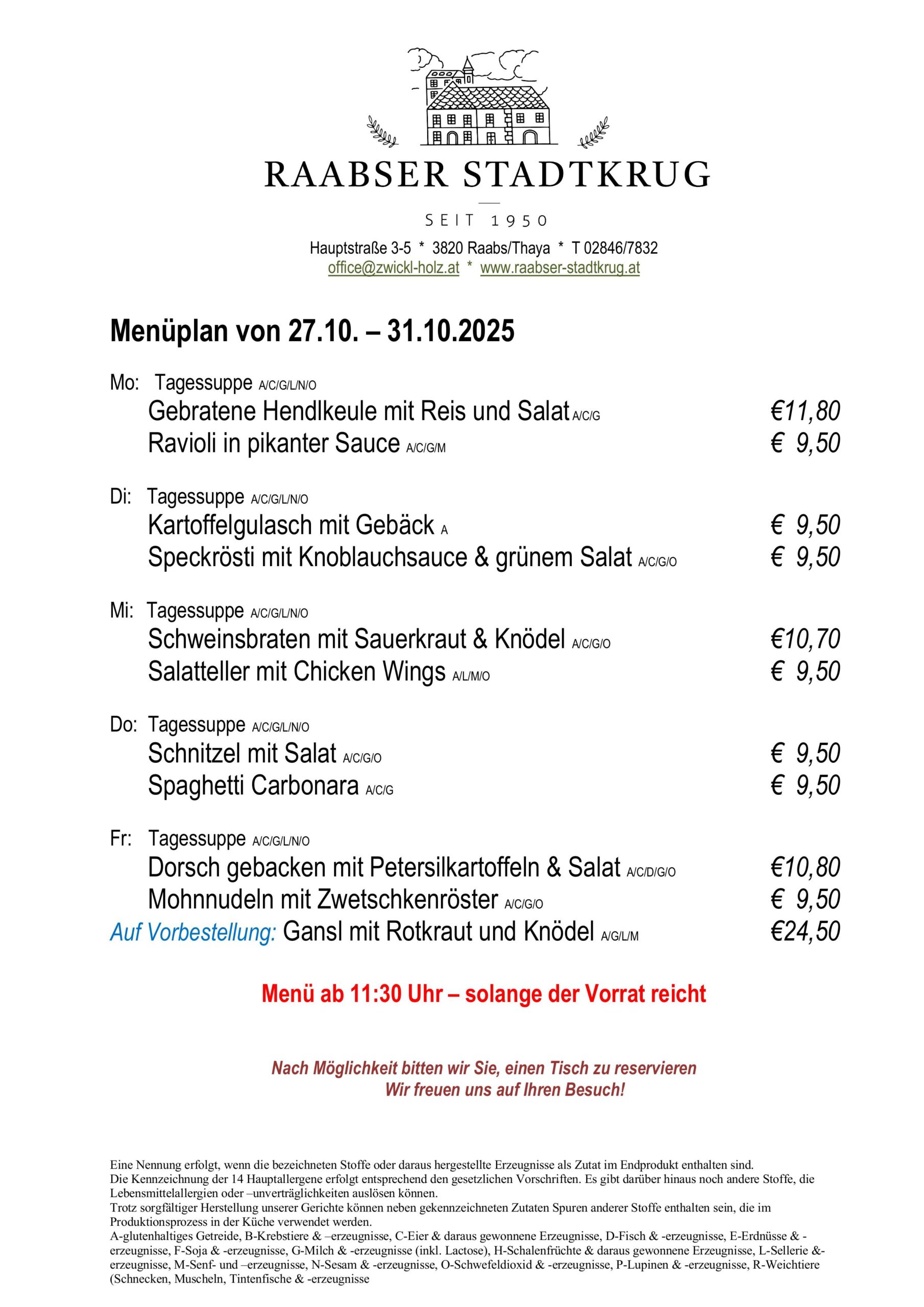 Der Raabser Stadtkrug – Ihr kulinarisches Zuhause für unvergessliche Genussmomente! Inmitten der malerischen Stadt Raabs an der Thaya erwartet Sie unser gemütliches Gasthaus mit einer einzigartigen Mischung aus traditioneller Hausmannskost und kreativen Gaumenfreuden. Der teilweise überdachte Gastgarten lädt Sie im Sommer bei ruhiger Atmosphäre zu Speisen der Saison ein.