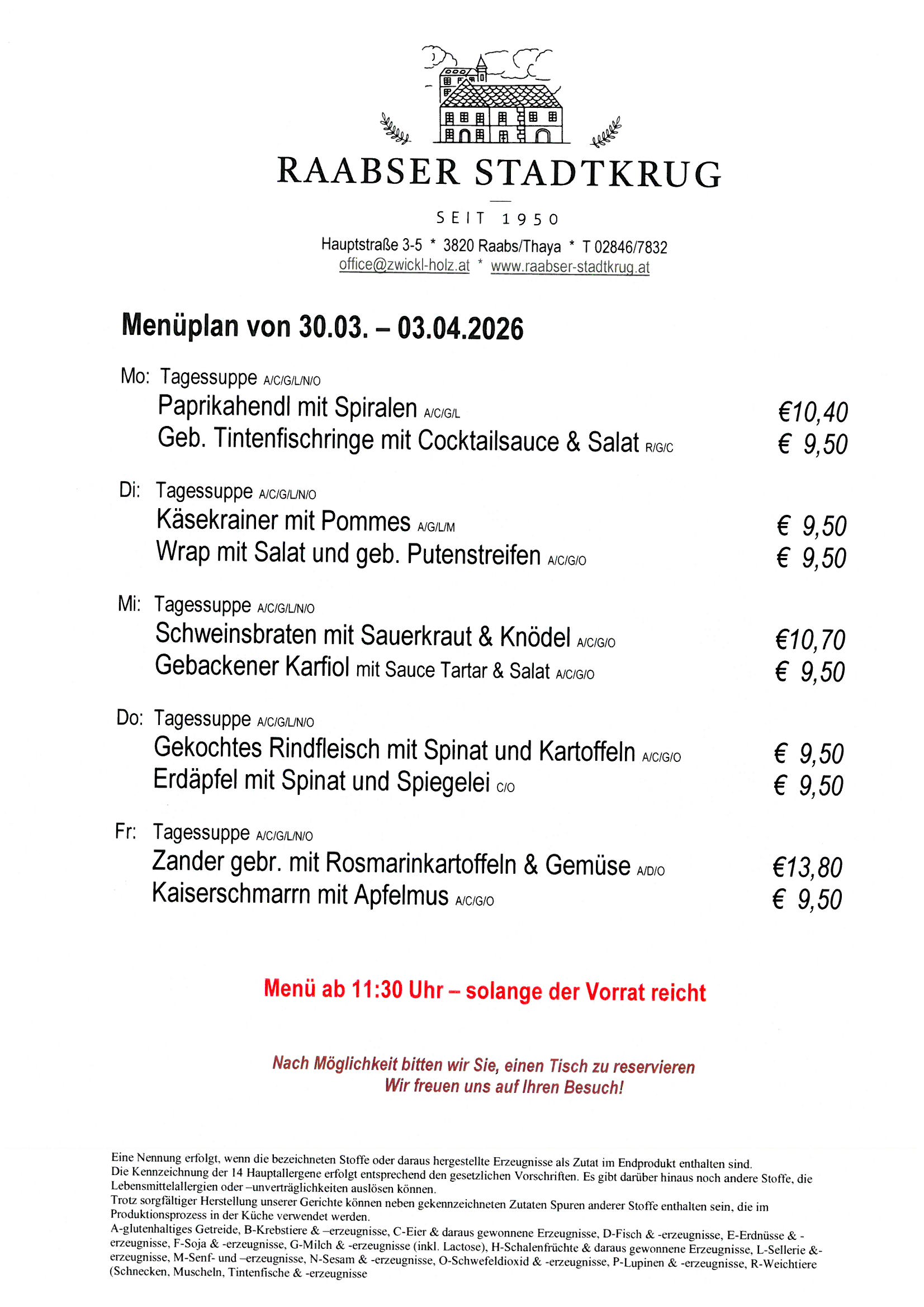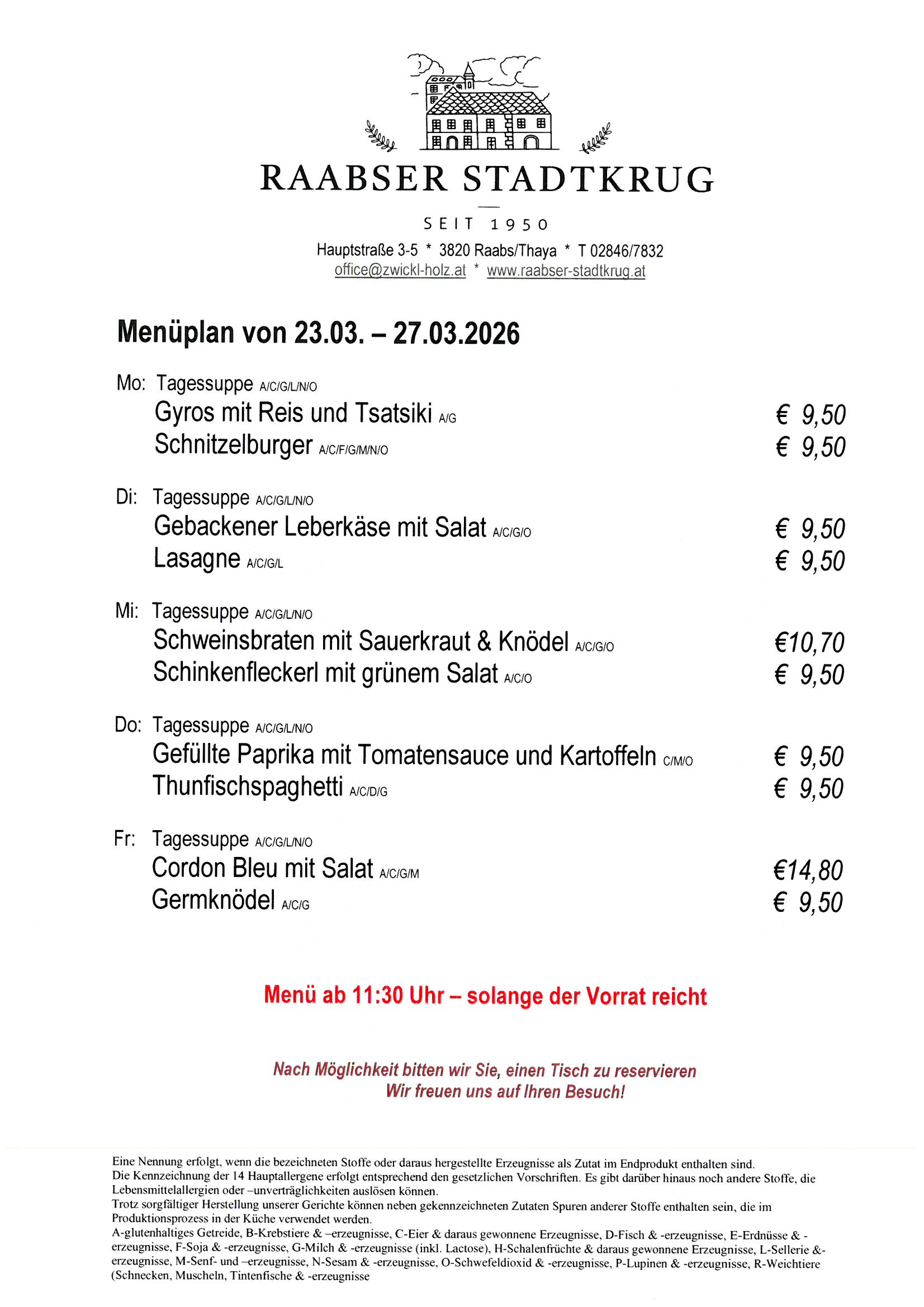 Im Raabser Stadtkrug erwartet Sie köstliche Hausmannskost, sowie eine vielfältige Weinkarte, die in gemütlichem Ambiente studiert werden kann.